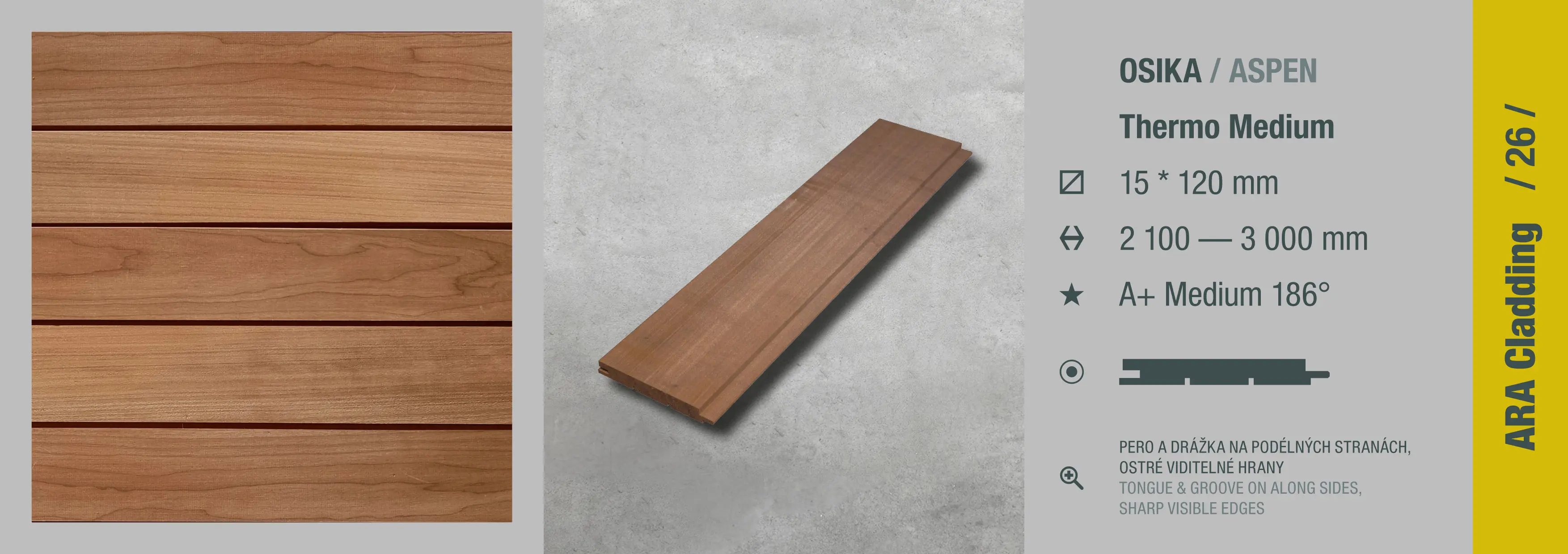 Osika Thermo 15x120mm /2100-3000/ STS saunový profil Medium