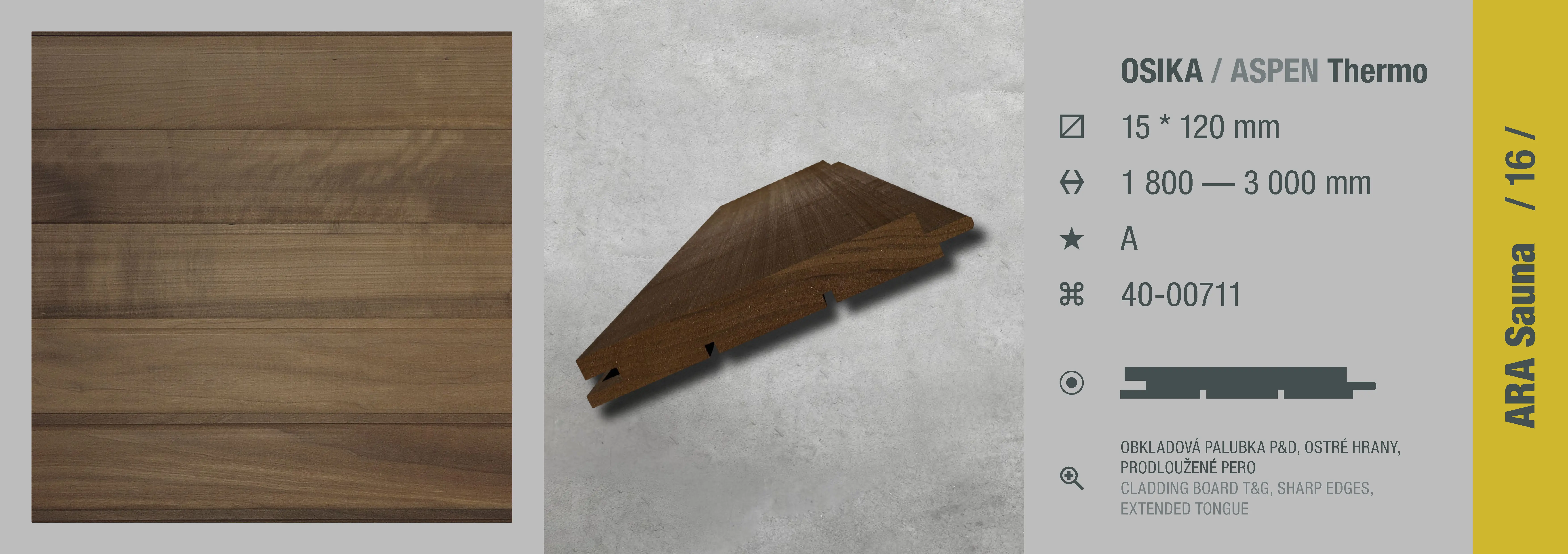 Osika Thermo 15x120mm STS saunový profil