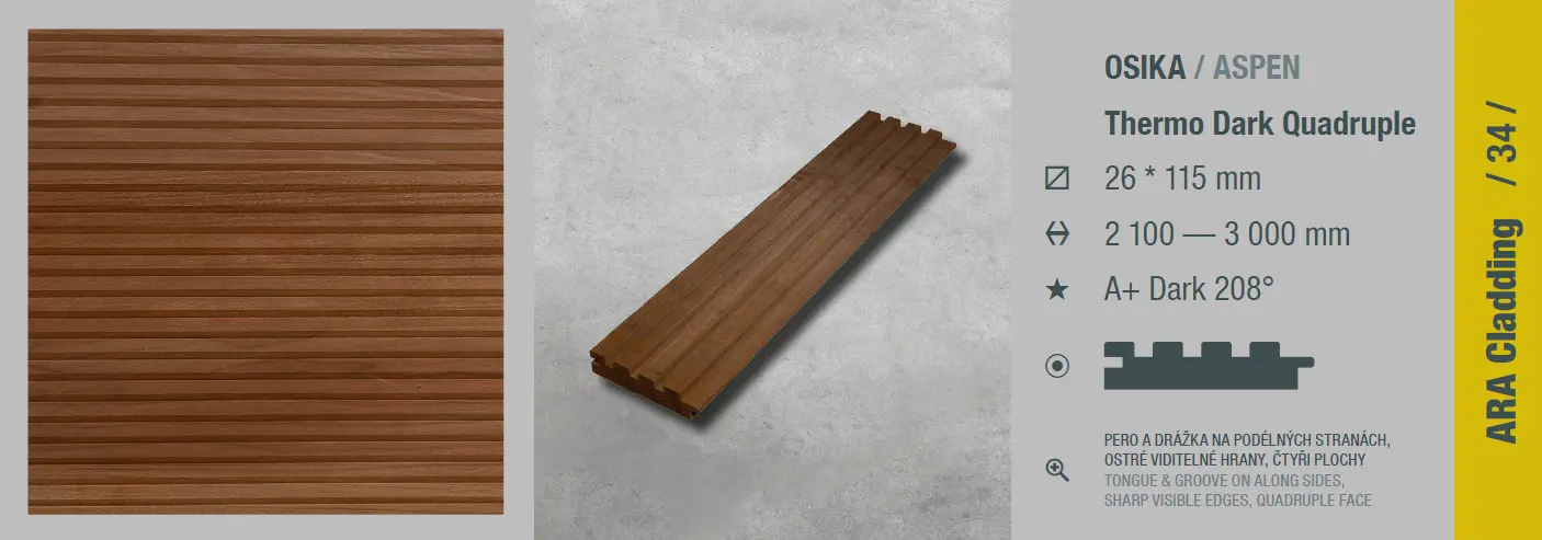 Osika Thermo Dark 26x115 mm STS saunový profil QUADRUPLE